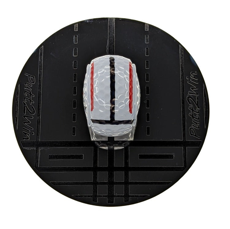 6.⛳ ✔️ PUTT2WIN BALL LINE STENCILS X 2 WITH PENS – 2 Ball Marker Stencils with Marker Pens are Included to Draw Lines on your Golf Balls which Align to the Putt2Win Mirror & Strengthen the Visual Alignment Aids of the Set. The Mirror Cannot be used while Playing Competitions but you can use Balls with Lines to Help your Alignment and Take your Practice on to the Course. The Stencils can also be used to Draw Lines on the Putt2Win Flat Ball.