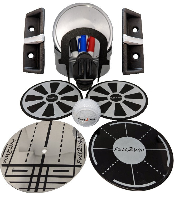 Putt2Win Putting First Aid Kit is a Simple yet Powerful Set of Training Tools to help Golfers Fix Problems with their Putting, Practice More Effectively, Check Putting Fundamentals Before a Game, Stroke the Ball Better with the Putter & to Make More Putts!