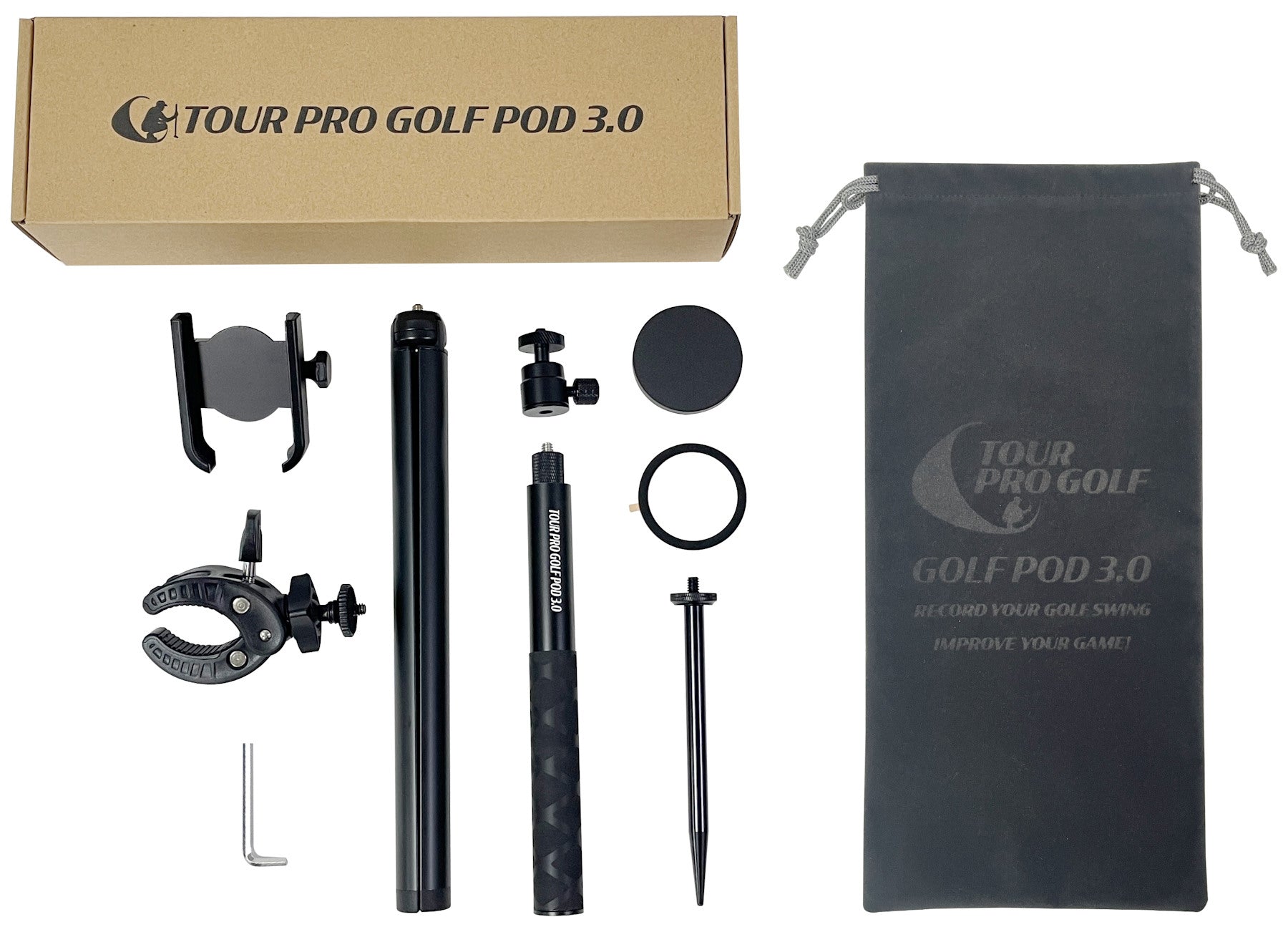 Tour Pro Golf Pod 3.0 Height Adjustable Magnetic Phone Tripod Full Set
