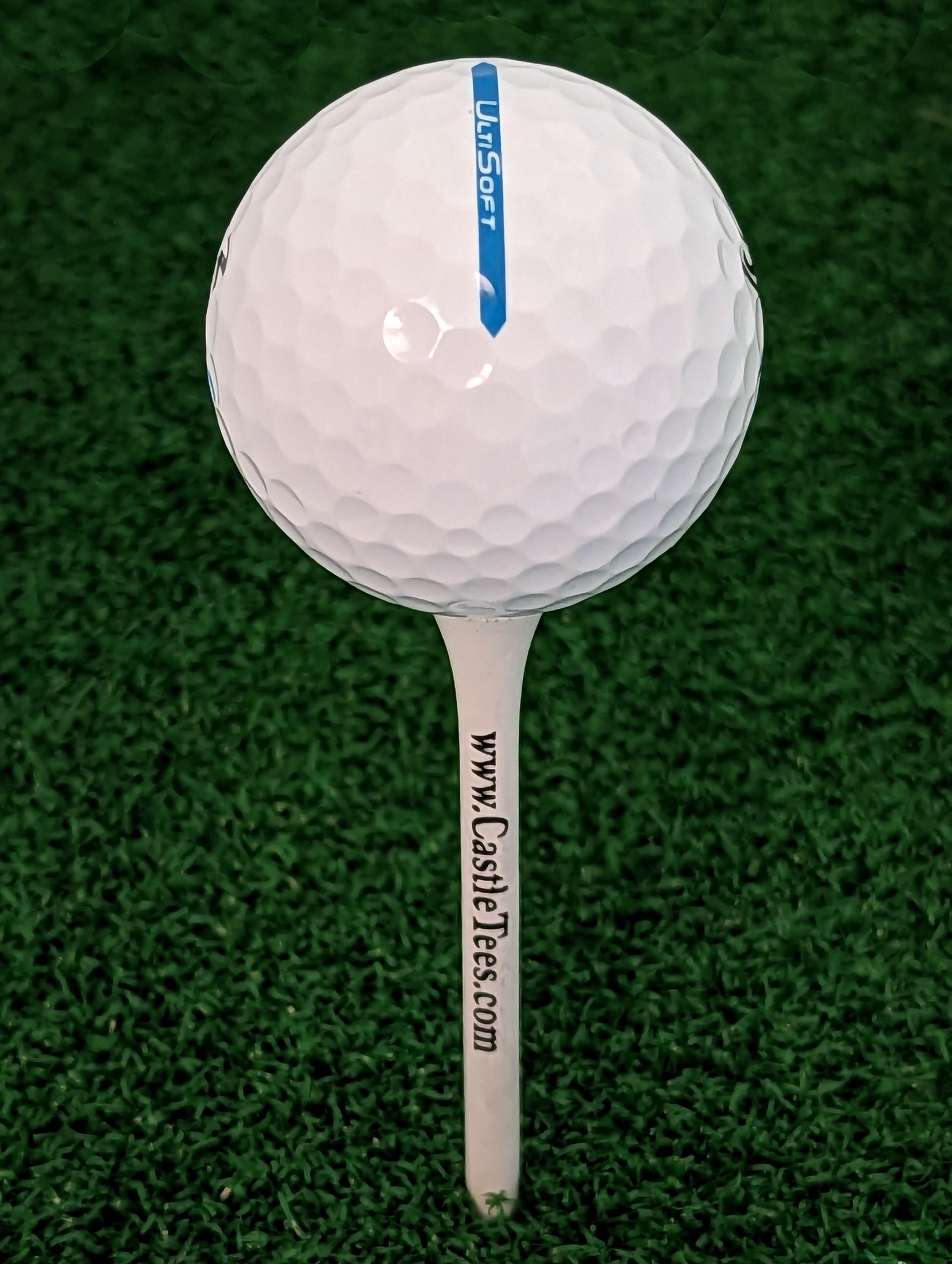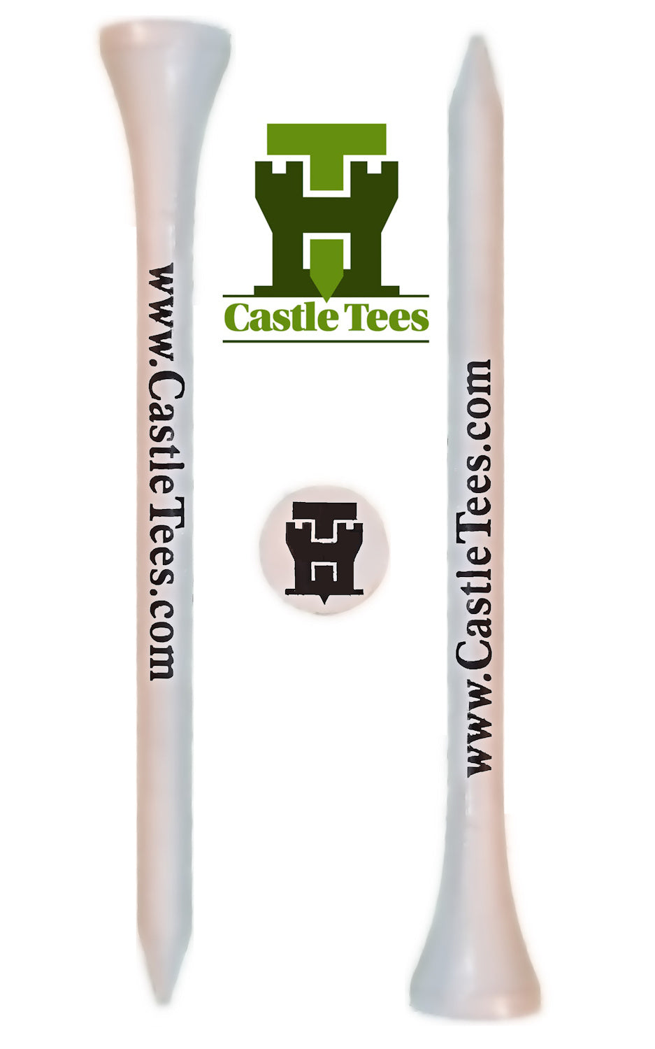 Castle Tees – 40 x 83mm / 3 ¼ Inch White Premium Bamboo Straight Tees with a Free Ball Marker & Free Pencil. Made from Moso Bamboo which is twice as strong as regular bamboo & has a higher tensile strength than steel meaning they are very strong. Castle Straight Tees are extremely strong & durable & fully biodegradable. Great for Golf, Great for the Planet & a Great Golf Gift.