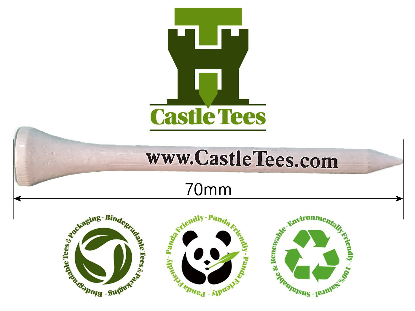 2.⛳ ✔️ Castle Tees are made exclusively from Moso bamboo which is TWICE as strong as the average bamboo species, has a higher tensile strength than steel and is more than FOUR times stronger than hardwood, meaning they are very strong and last longer than most Tees. Castle Tees premium bamboo golf Tees are very strong, very durable and biodegradable, making them a more environmentally friendly alternative to plastic and hardwood Tees.