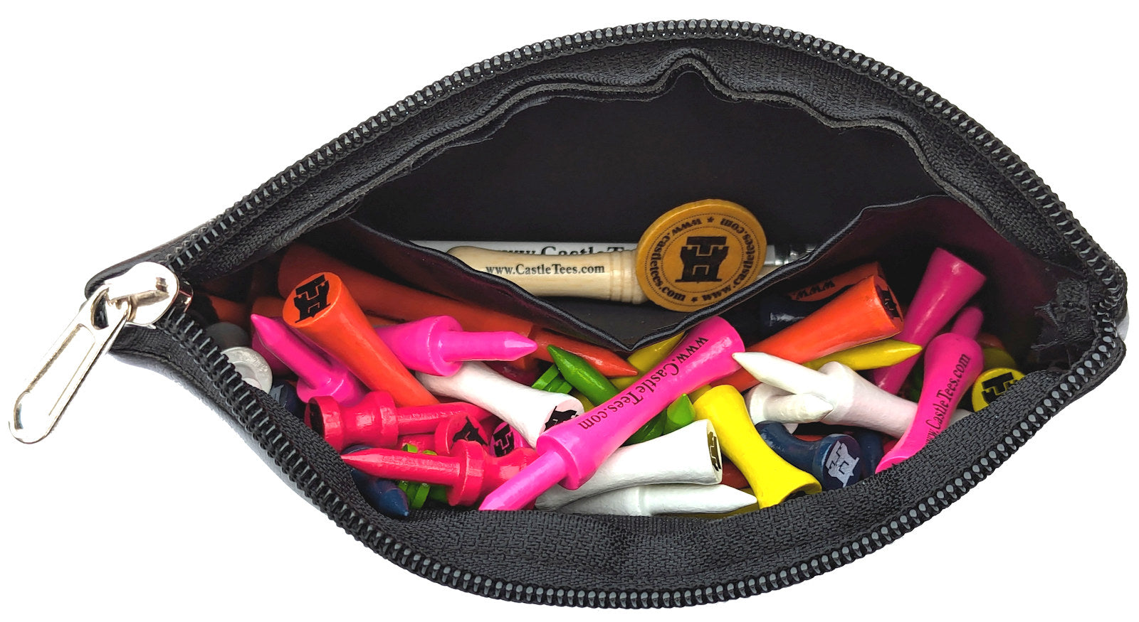 Mixed Castle Tees Zip Storage Tee Bag – 45 pcs Mixed Size Premium Bamboo Castle Golf Tees