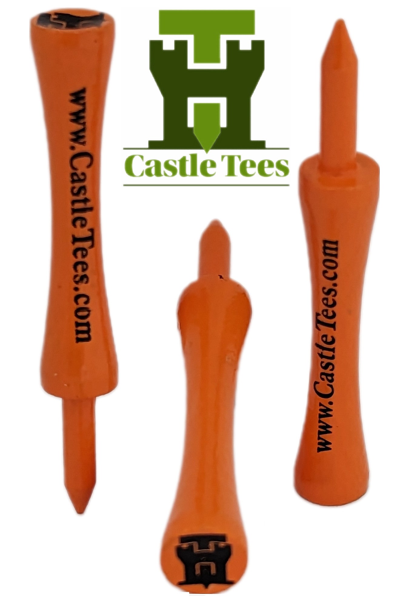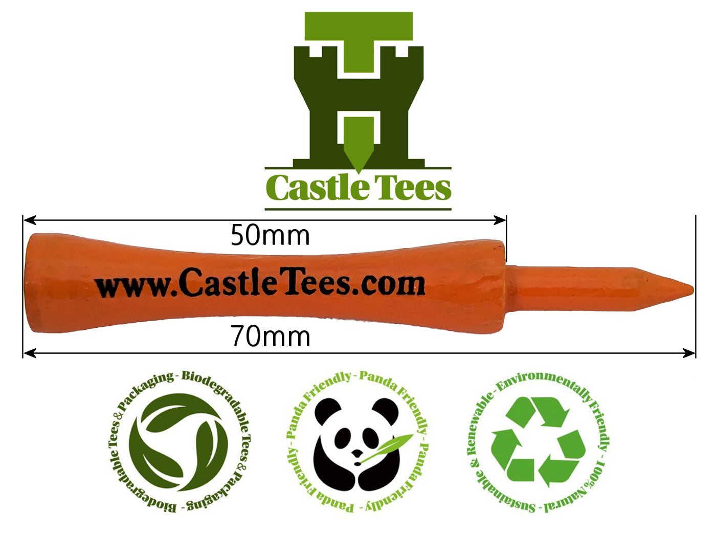 Orange Castle Tees – 50 x 70mm 2 ¾ inches Orange Premium Bamboo Golf Tees in a Biodegradable Kraft Box