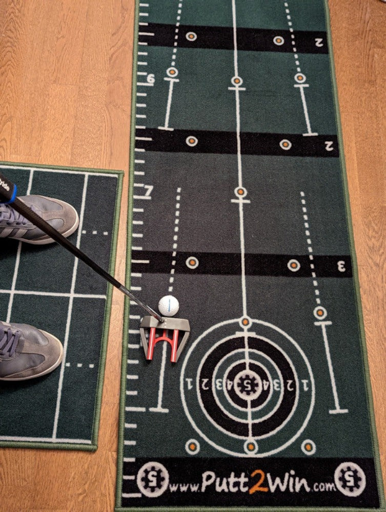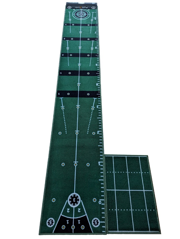 2.⛳ ✔️ FOUR CHALLENGING PUTTING AND CHIPPING GAMES - The Putt2Win Pro Putting Mat has been Expertly Designed to Offer Four Games for 1 to 4 Players that can be Enjoyed by All the Family Young or Old. Each Game has been Specifically Designed to Challenge and Improve the Key Elements needed for a Great Short Game. Multiple Innovative Visual Alignment Aids with Distance Markers and Targets are Printed on the Mat so you can Practice and Improve Every Aspect of your Putting and Chipping Game.