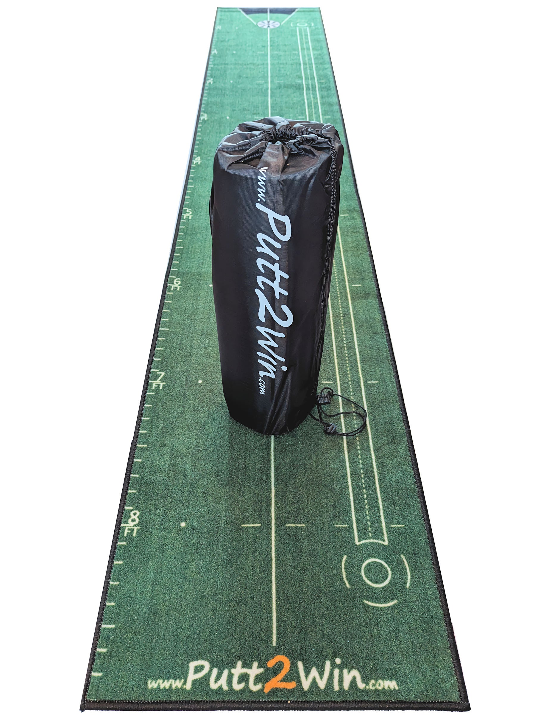 Putt2Win Training Putting Practice Mat is a Quality Technical Training Mat Designed in the UK to Help Golfers of all Ages and Skill Levels to Improve their Putting. Great Golf Gift.