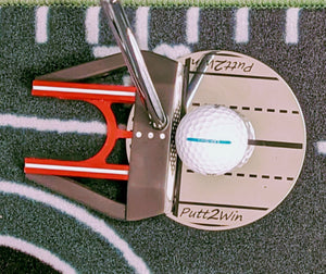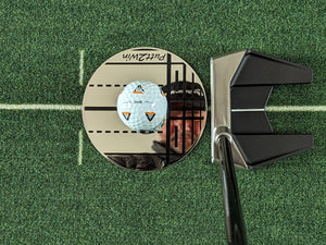 Place the Ball on top of the hole in the centre of the mirror aligning your head position, lead shoulder & putter as shown.