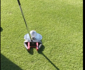 Use the Mirror as shown in the images below lining up the centre line on the mirror to your target. The mirror will provide great lined visuals to putt the ball along, lines to ensure your putter is square to target and, if you have them, lines on the ball to align to the target. Your head position should be reflected in the mirror to ensure you setup in a consistent position and your head maintains its position during the putting stroke.