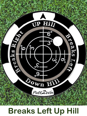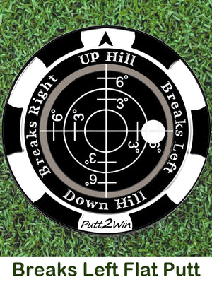 The Further the White Bubble is from the Centre of the Green Reader the Greater the Break / Slope. The more you use the Putt2Win Green Reader, the more Confident your Putting will become and the More Putts you will Hole.